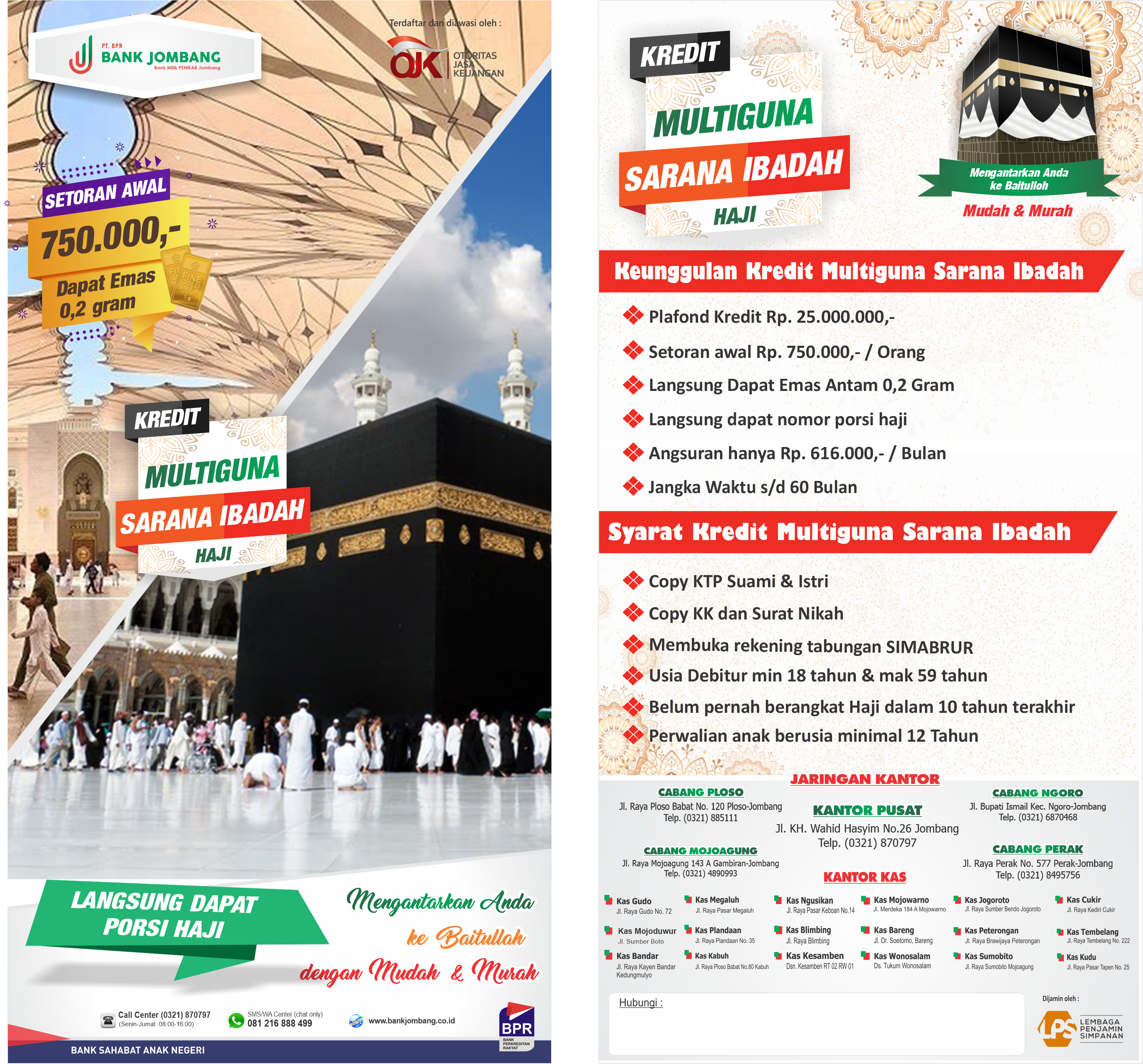 LABBAIKAA merupakan pengajuan Haji secara P2P Landing online, melalui Bank Jombang aplikasi ini dapat mempermudah nasabah dalam mengajukan haji. Mulai dari awal pengajuan di BPR hingga proses tandatangan ke Departeman Agama setempat.